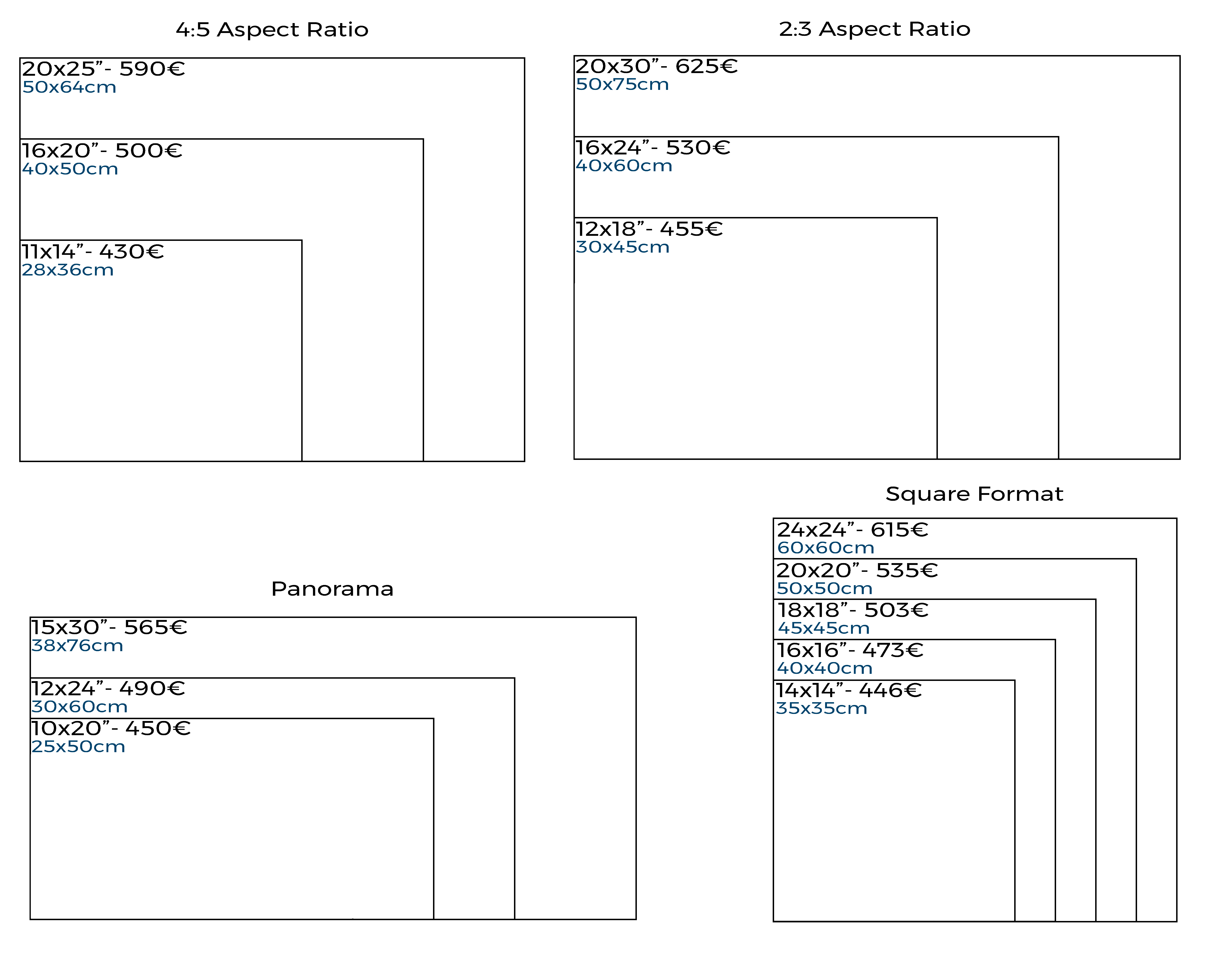 Por favor, contacta conmigo con los detalles de tu proyecto para acordar un presupuesto más preciso. Los precios de abajo incluyen el coste de hacer los negativos. Los precios no incluyen IVA. El segundo impreso tiene un discuento del 20%.